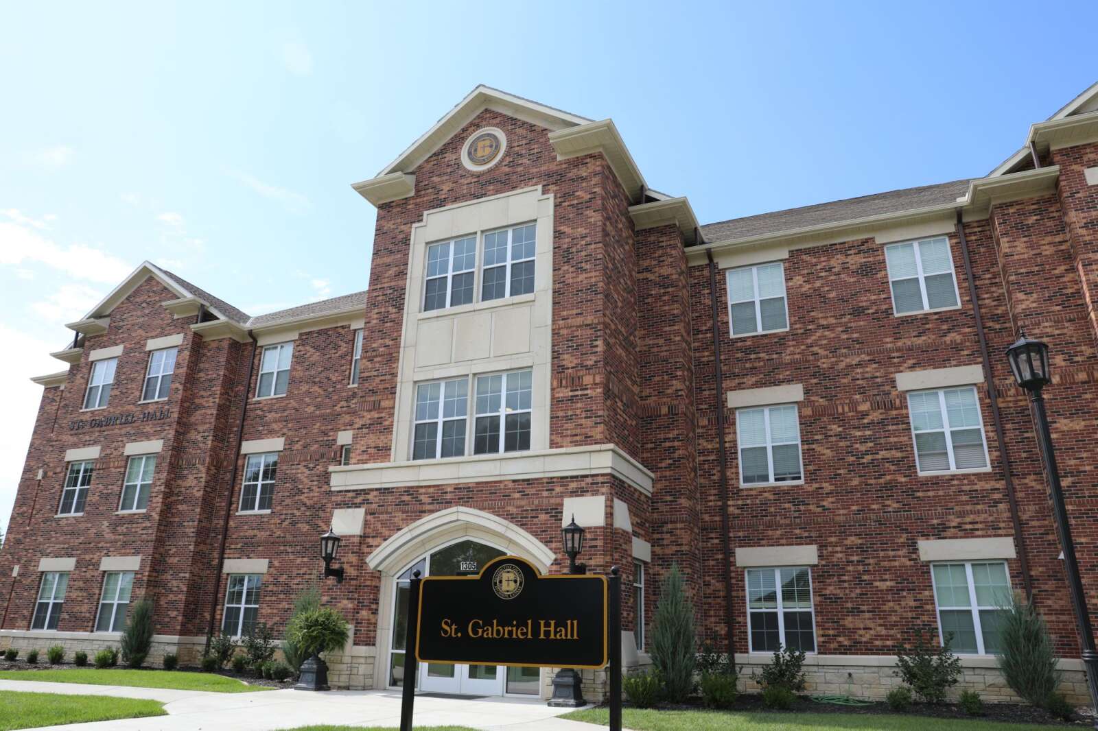 St. Gabriel Hall opens in the fall of 2024. The hall houses 120 upperclassmen male residents. The building design, with brick and limestone exterior, high ceilings and large windows, creates a bright and inviting space and ties in with the rest of the campus.